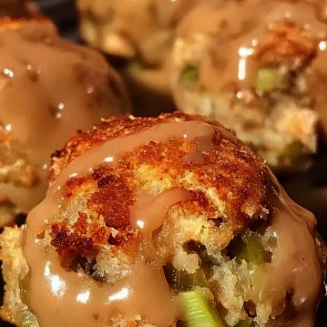 Serve the stuffing balls warm with turkey gravy, cranberry sauce, or your preferred dipping sauce. Add some chopped parsley on top for a fresh flavor.