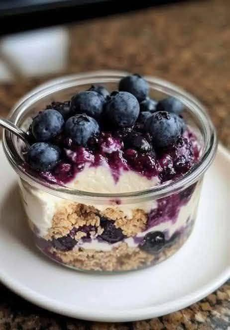 This parfait is thick, creamy, and loaded with fresh blueberries, layered between protein-boosted Greek yogurt and soft, chewy oats with a little crunch. It hits the trifecta of high protein, great texture, and amazing taste—all while taking less than 5 minutes to make.