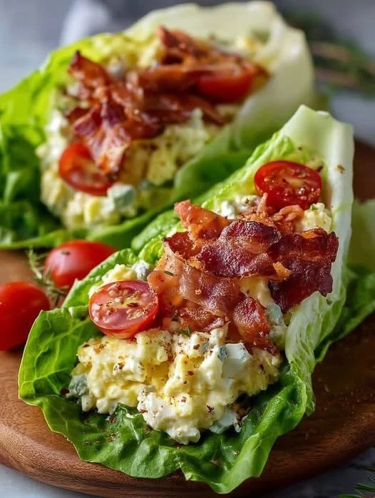 Assemble and Serve: Wash and pat the lettuce leaves completely dry. Spoon a serving of the chilled egg salad into the center of each lettuce cup. Garnish with crumbled bacon and halved cherry tomatoes (if using) and a sprinkle of fresh herbs. Serve immediately.