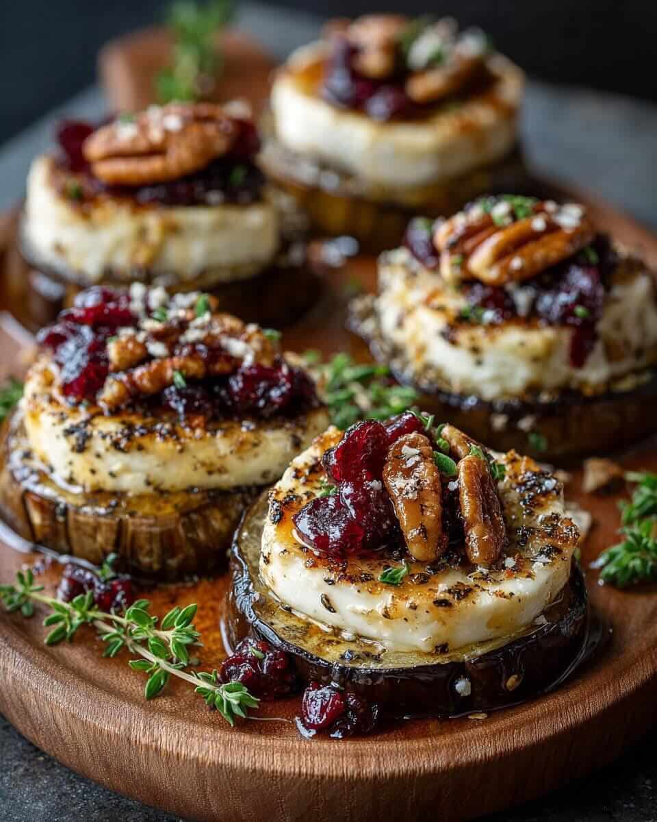 Mediterranean Eggplant Rounds with Brie, Cranberry & Pecans